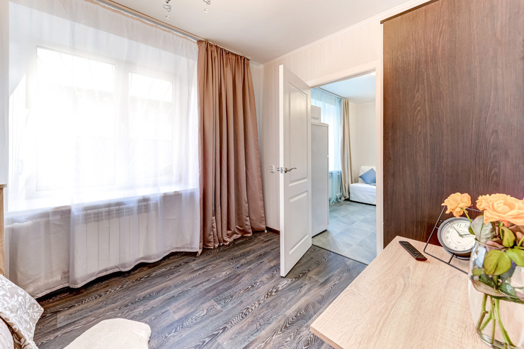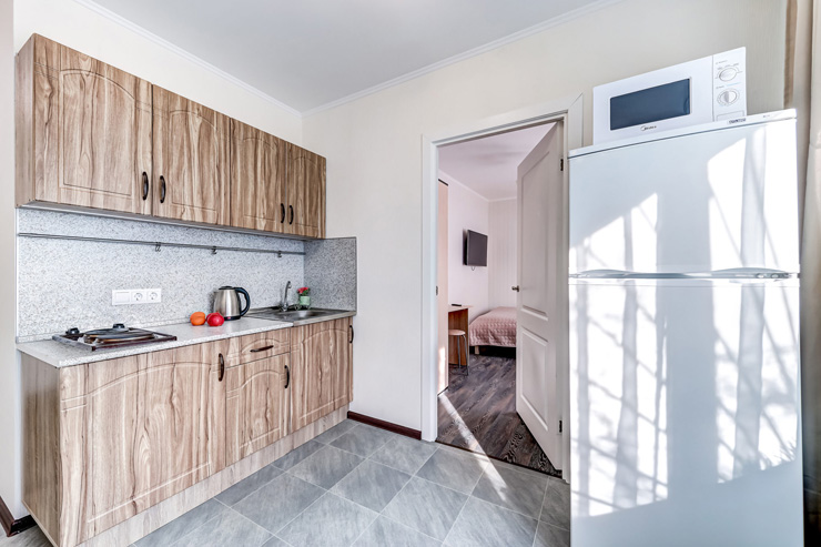 - Оборудование: микроволновая печь, набор посуды, плита газовая, стиральная машина, телевизор, холодильник, электрочайник