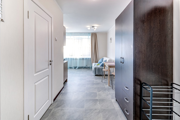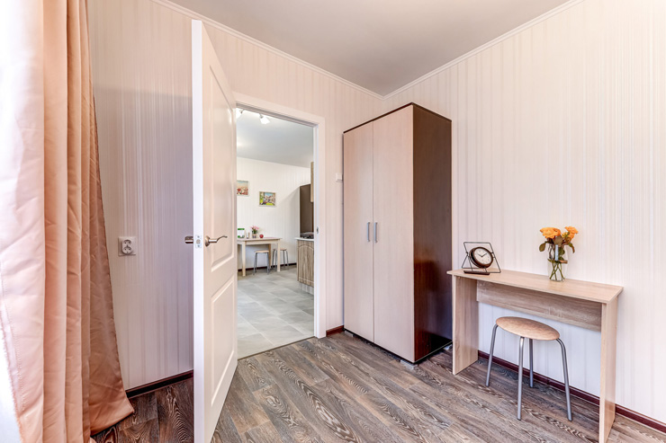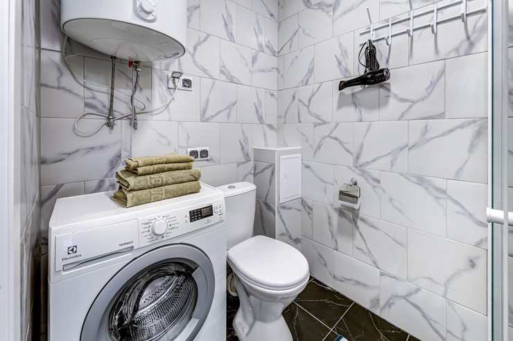 - Оборудование: духовой шкаф, микроволновая печь, набор посуды, плита газовая, стиральная машина, телевизор, холодильник, электрочайник