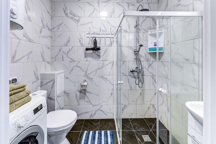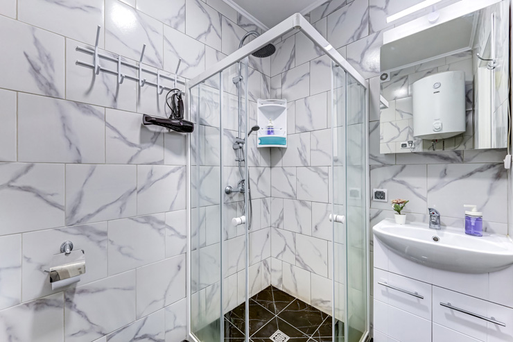 - Санузел: бойлер, с душем, туалетные принадлежности, фен